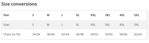 Plus, with a range of sizes from small to 5XL and a choice of colours.