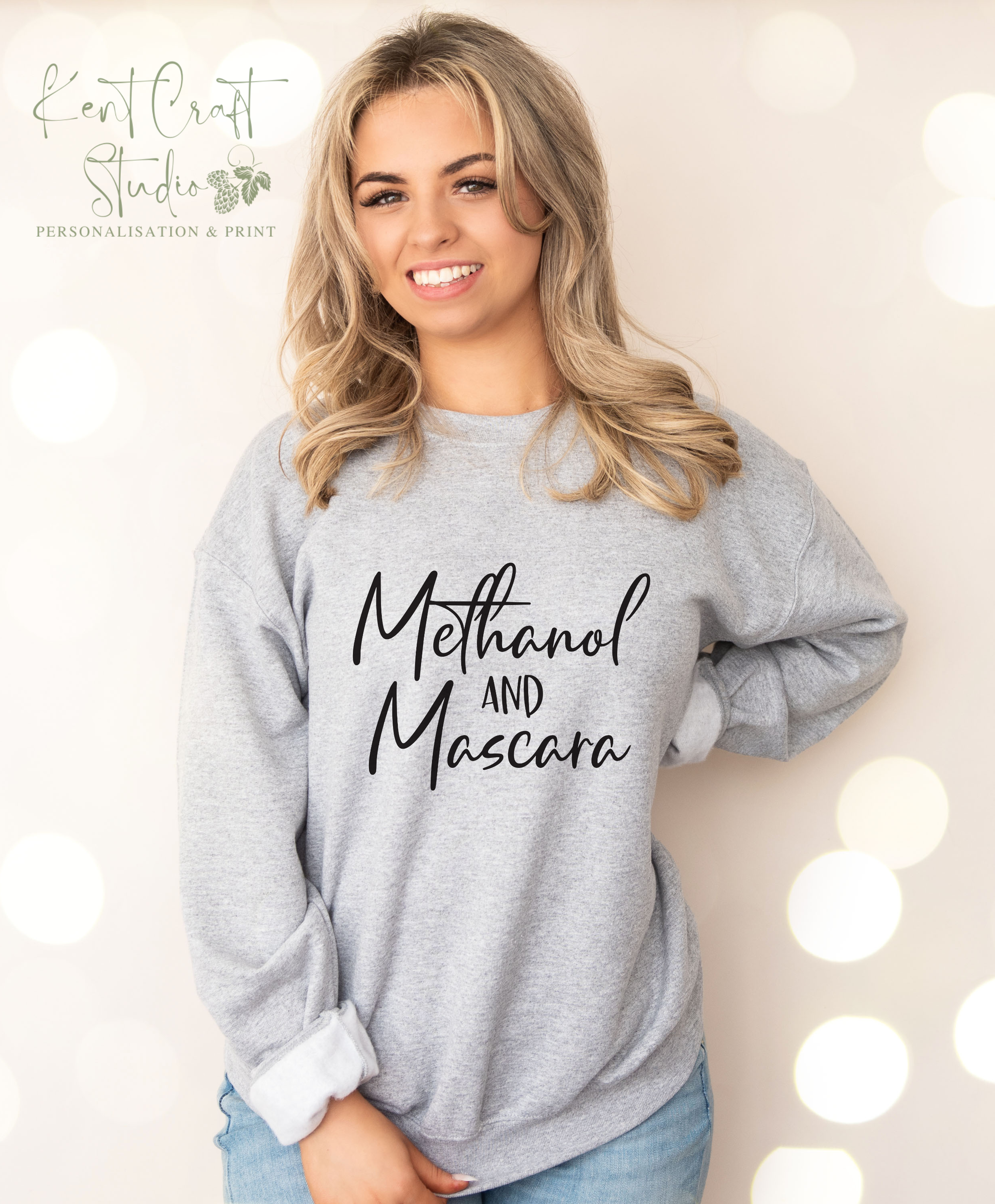 Humour drag racing sweatshirt, Methanol and mascara, Race girl gift, Gift for her