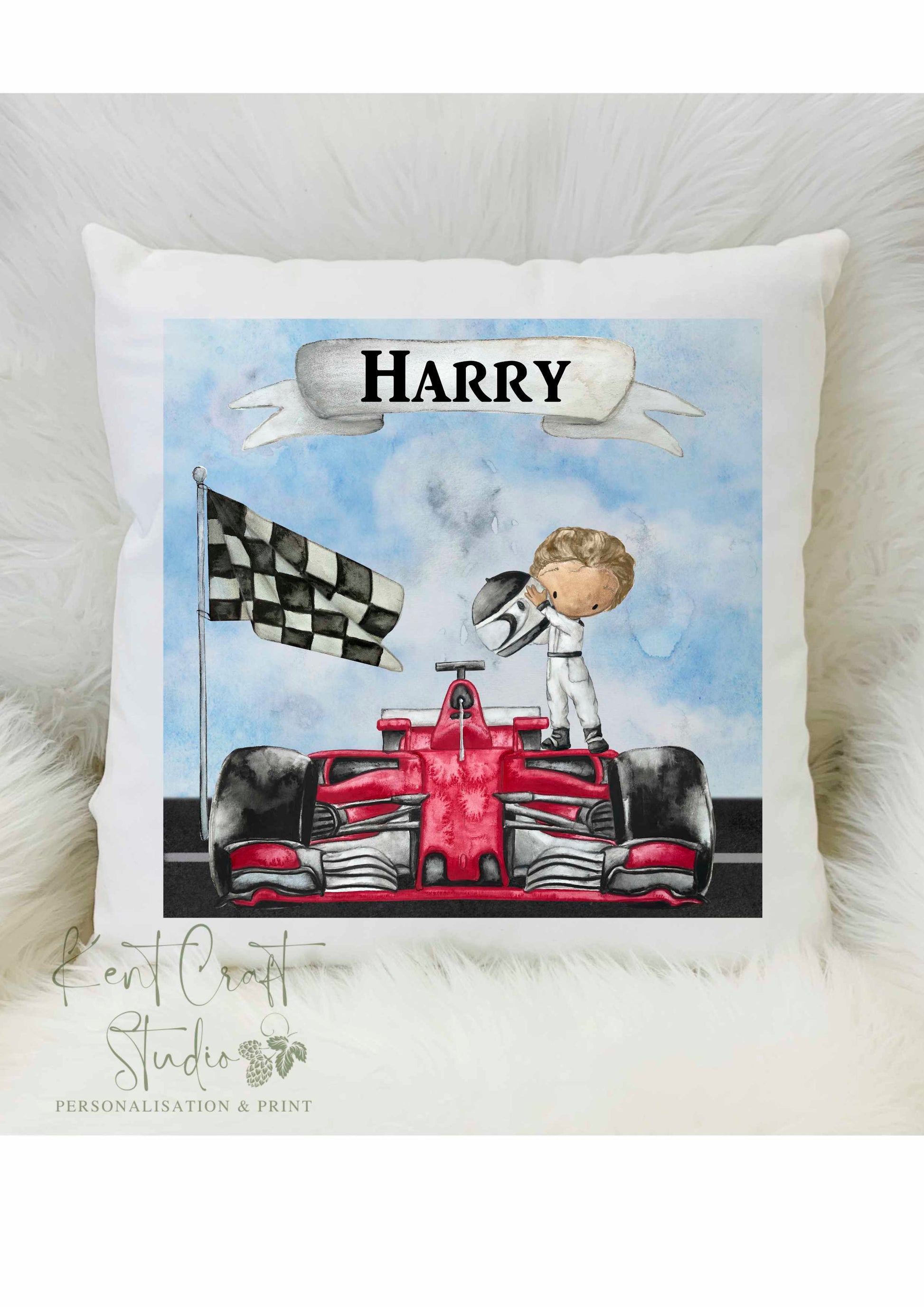 Personalised Racing Driver Cushion - Racer Girl or Boy